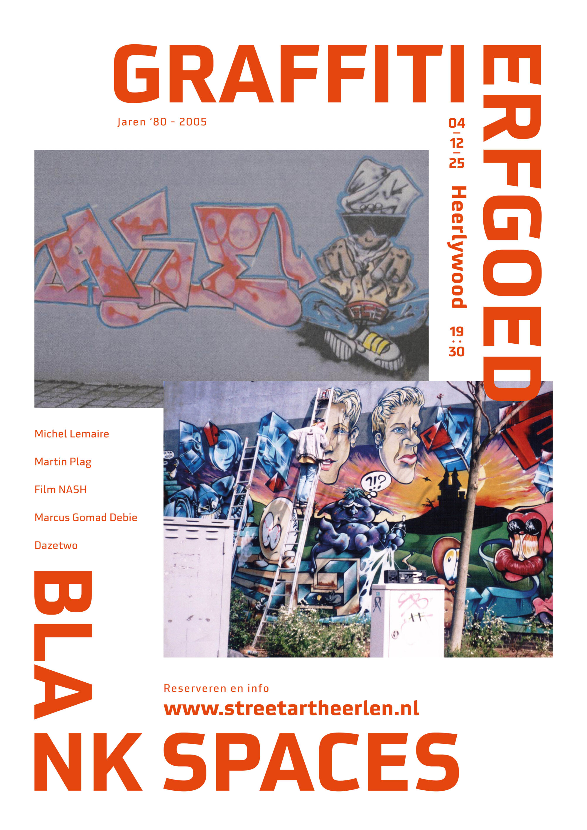 Tijdens de bijeenkomst gaat Sanne Rompen-Gijsbers (oprichter Street Art Heerlen) in gesprek met Michel Lemaire (stadshistoricus en specialist in subculturen), Martin Plag (actief als kunstenaar sinds 1986), Marcus Gomad Debie (actief als kunstenaar sinds 1985) en Dazetwo (tweede generatie writer). Daarnaast vertonen we de film Nash van graffiti-legende Werner Zwakhalen.